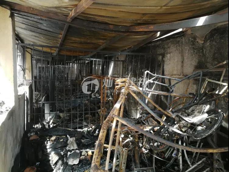 車棚一共約10間,從東往西,約有6間車棚過火,過火程度從東至西逐漸減輕。初步估計,約有幾十輛電動車等非機動車毀于大火。