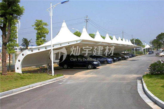 燦宇建材廠家專業生產膜結構車棚系列產品,公司擁有優秀的生產人員和生產技術,在保證質量的同時,給您滿意的售后服務,燦宇膜結構車棚長期供貨直銷,也可根據您的要求設計生產,量大從優,歡迎來電訂購!電話:18915516722