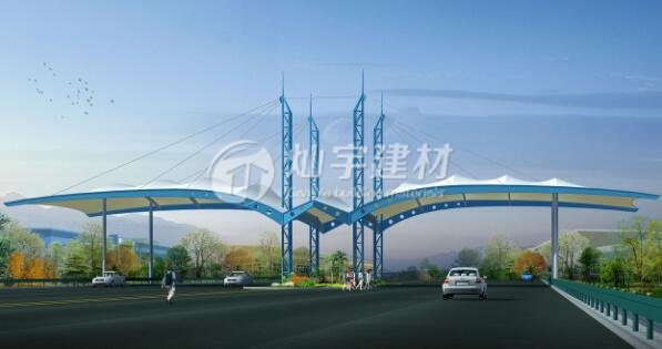 2、膜結構車棚的頂部封邊板顏色能夠選擇,多數都茶色陽光板封頂,和車棚整體骨架用壓條鉚接固定,耐酸堿腐蝕,有稱心強度對棚內車輛起到維護作用。