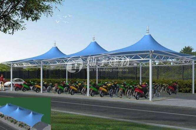 膜結構車棚選用進口PVDF膜材料配鋼結構骨架,表面處理采用進口船用底漆,炳烯酸聚氨酯面漆藝術性:除了一般遮陽棚不可比擬的實用、耐用、遮風擋雨的功能外,膜結構車棚更是一座雕塑,一件藝術品,給人美的視覺享受。上你回味無窮。